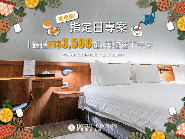 July、August Specific Date Offer: Double rooms from NT$3,588 on selected dates. Limited time and availability — now with an extra bonus: complimentary afternoon tea!