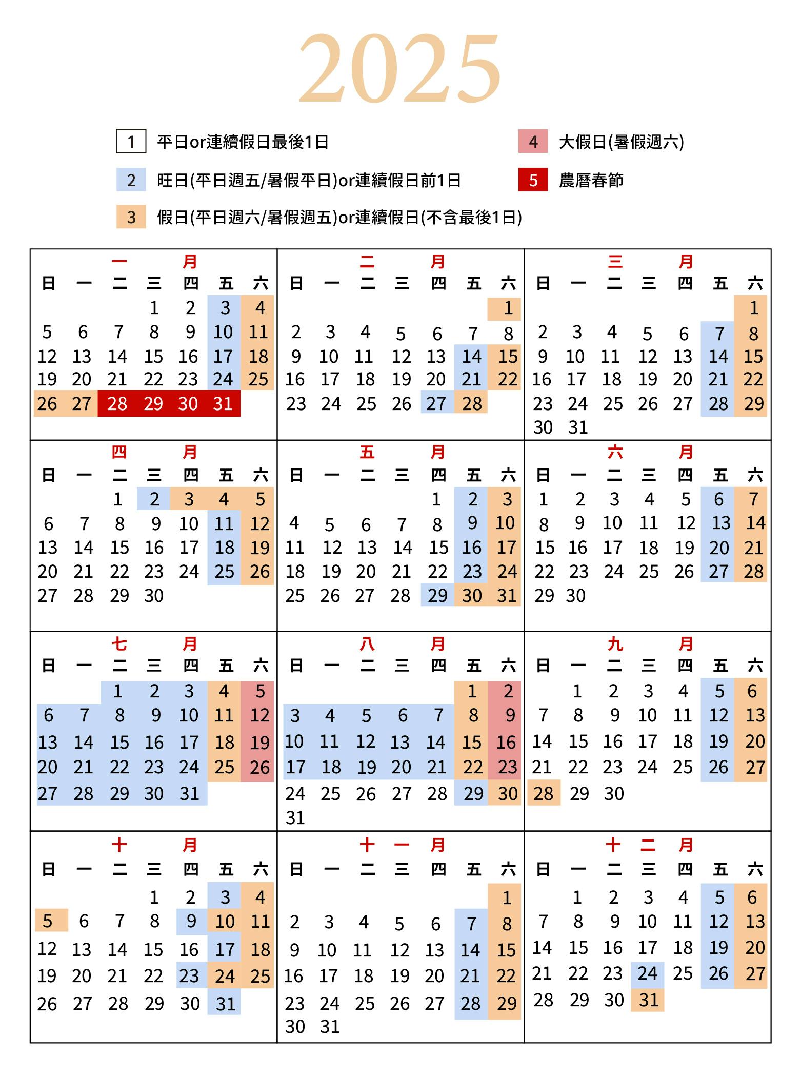 2025/5/1(含)後成立之訂單適用上述新制取消規範,2025.5月1日前成立之預訂維持舊制取消規範,規範調整無另行通知。