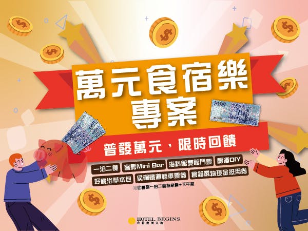- 本專案恕不與任何其他優惠及票券併用。未使用任一專案單項内容,恕不折讓或延至他次使用。HOTEL BEGINS保留專案活動解釋之權利