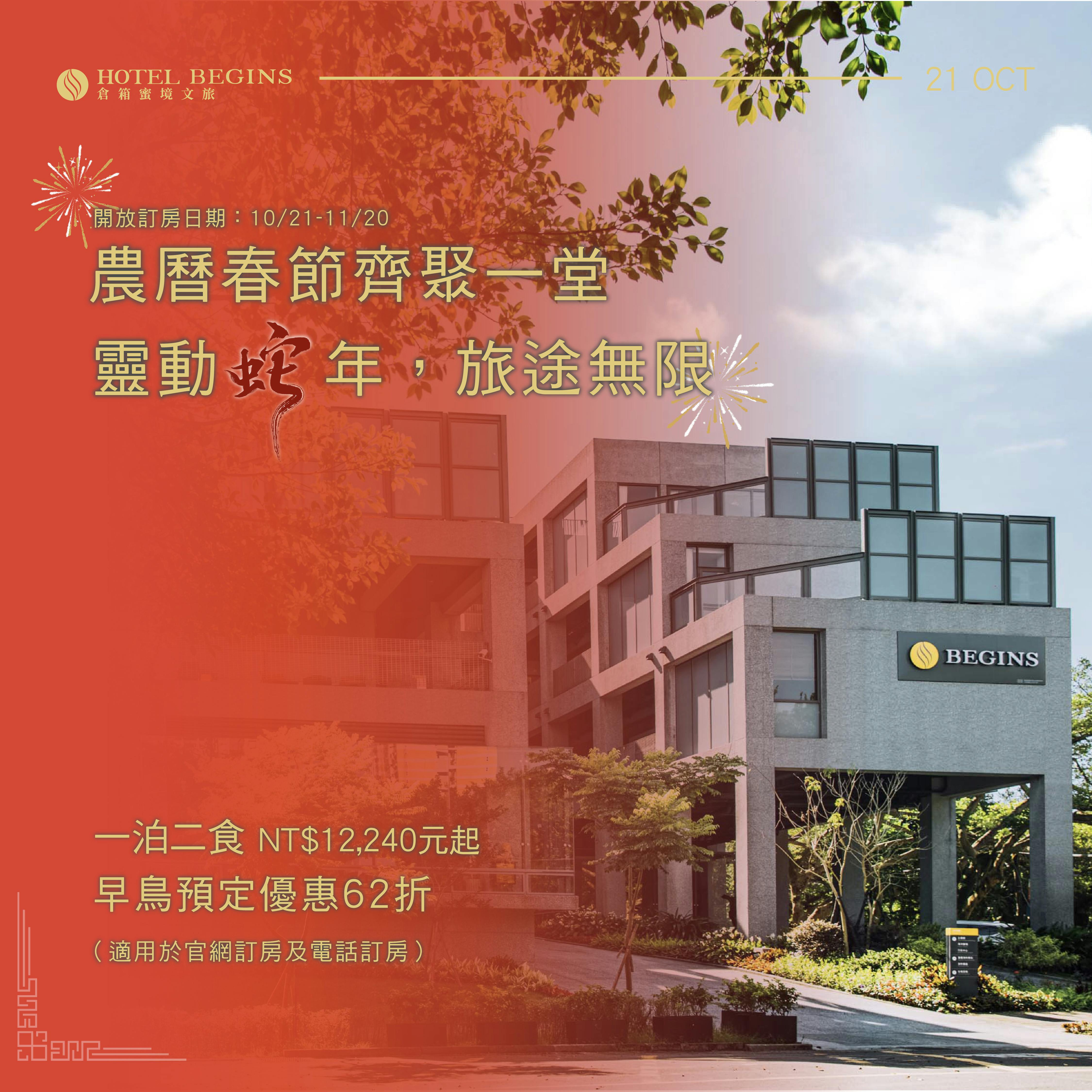 農曆春節齊聚一堂,迎接嶄新蛇年,蒞臨HOTEL BEGINS 倉箱蜜境文旅度過美好團圓假期!