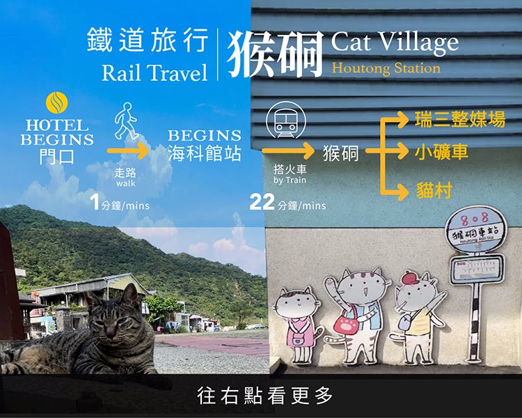 搭火車從 HOTEL BEGINS 海科館站,到猴硐火車站約22分鐘,非常方便。